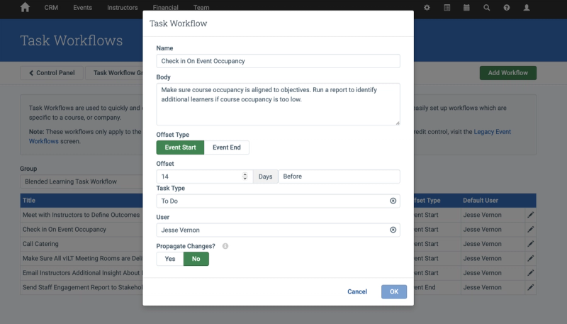Within a course template, multiple courses can be created for classroom, self-paced (LMS), or blended learning modalities. These templates can be reused to build new courses with just a few clicks. Session durations, dates, and other info can be edited at the course template level. This ensures that the changes are shared across all versions of the course in that modality. Courses can be added to learning paths that map out exactly how you want your learners to progress. This is a great solution for onboarding, meeting specific compliance requirements, and managing specific skill sets across your workforce. Course templates can be connected to a wide variety of subsystems, and integrated with your training data to allow Administrate’s automation capabilities to simplify taskflows. Administrate users commonly connect course templates to task workflows, communication schedules (typically email and text communications), and other business systems such as your HRIS. Automatic notifications can be triggered by changes to the course template for learners, instructors, and team members. Connected databases can be automatically updated by these changes as well. This illustrates how an infrastructure approach to training management can scale your effort. When courses are connected, and easily accessible by multiple systems, it becomes possible to manage changes across hundreds (or thousands) of courses with little effort.